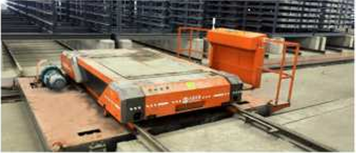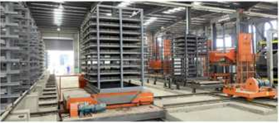本生產(chǎn)線預制成型的濕磚由升板機將其提升放置在鐵架之上每一層磚板相互隔離,放滿之后可用又車將整個鐵架轉(zhuǎn)移至養(yǎng)護區(qū),也可配套新能源智能子母車將其轉(zhuǎn)運至養(yǎng)護窯內(nèi)進行養(yǎng)護。